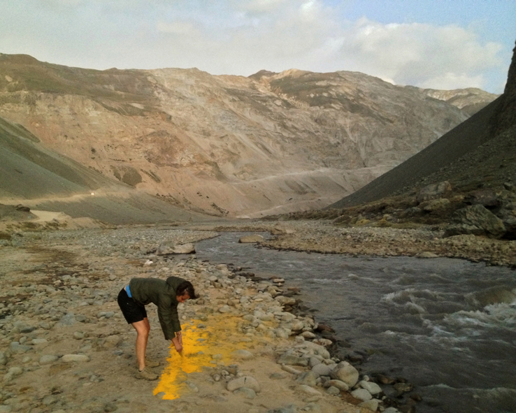 Fotografia e intervenção ambiental com pó de cúrcuma – registro por Constance Pinheiro.